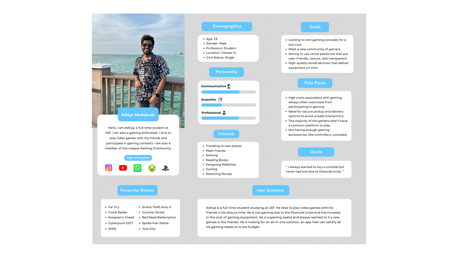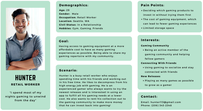 We have created personas to gain a deeper understanding of our target users for GameShare. By developing detailed personas, we were able to understand and empathize with different user groups, foresee their needs, and customize our design and development efforts to address those needs effectively.