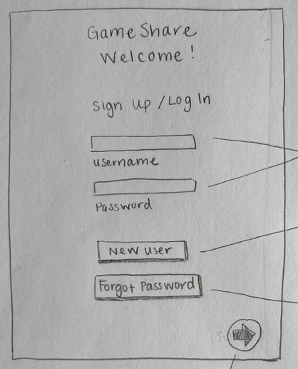 The annotated wireframes for GameShare serve as a crucial component of our UX design process, providing a detailed visual representation of the application’s structure and user interface. These wireframes outline the placement and functionality of key elements across various screens, such as the Welcome/Login page, Sign-Up page, Profile page, Home page, and others. Each wireframe is annotated with notes explaining the purpose and functionality of each element, ensuring that the design team has a clear and shared understanding of how the application should function. These annotations also help in identifying potential usability issues early in the design process, allowing for iterative improvements based on user feedback and testing.